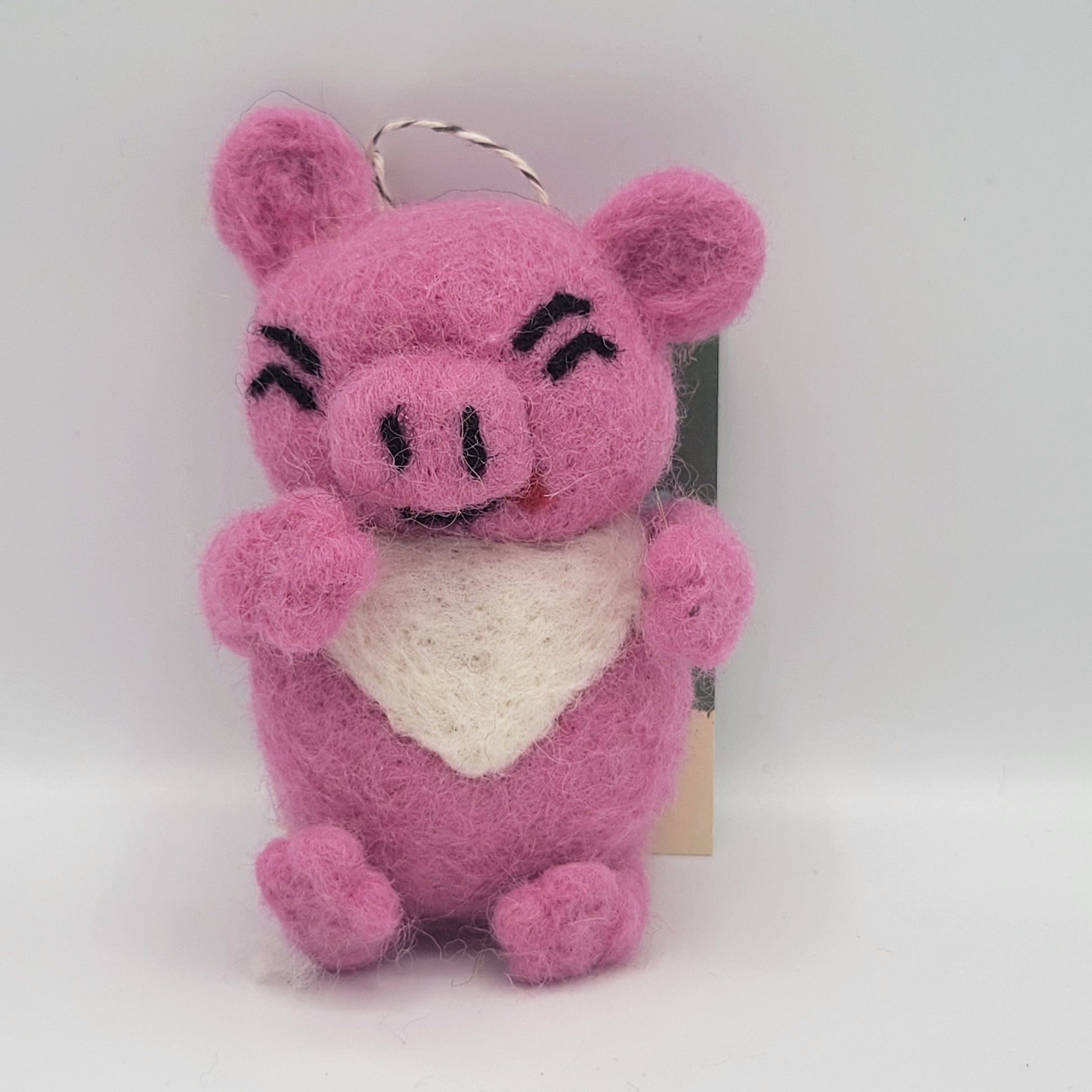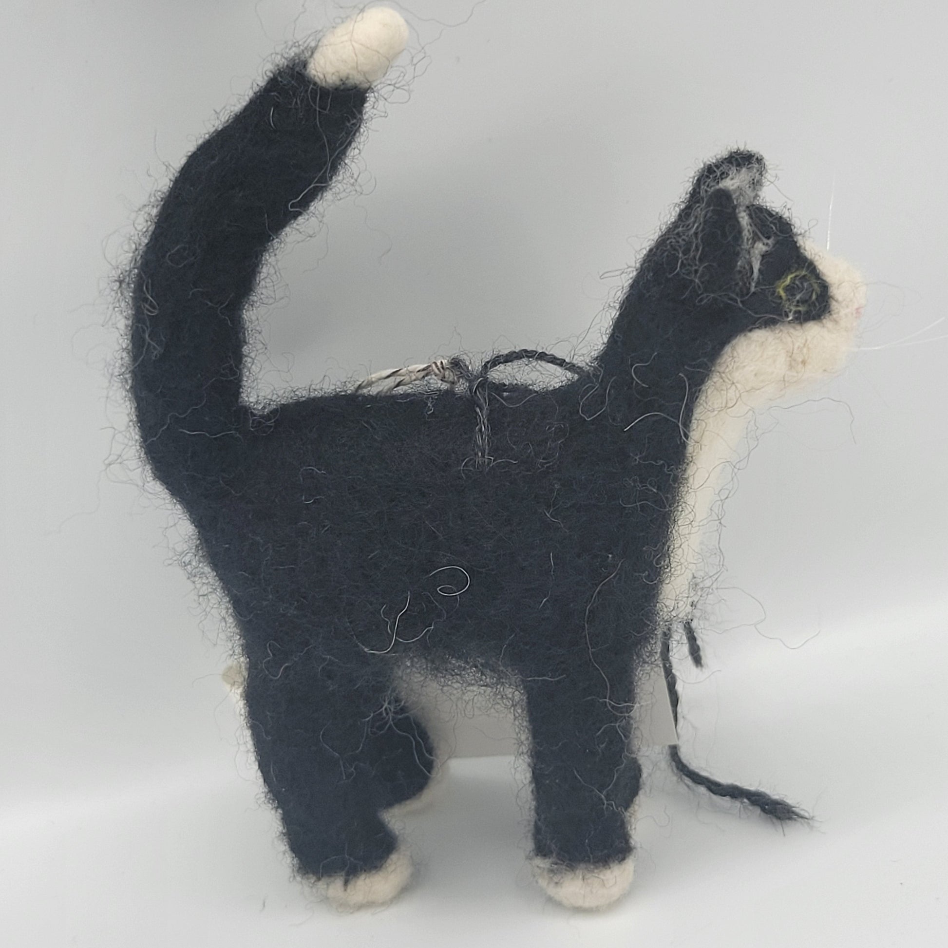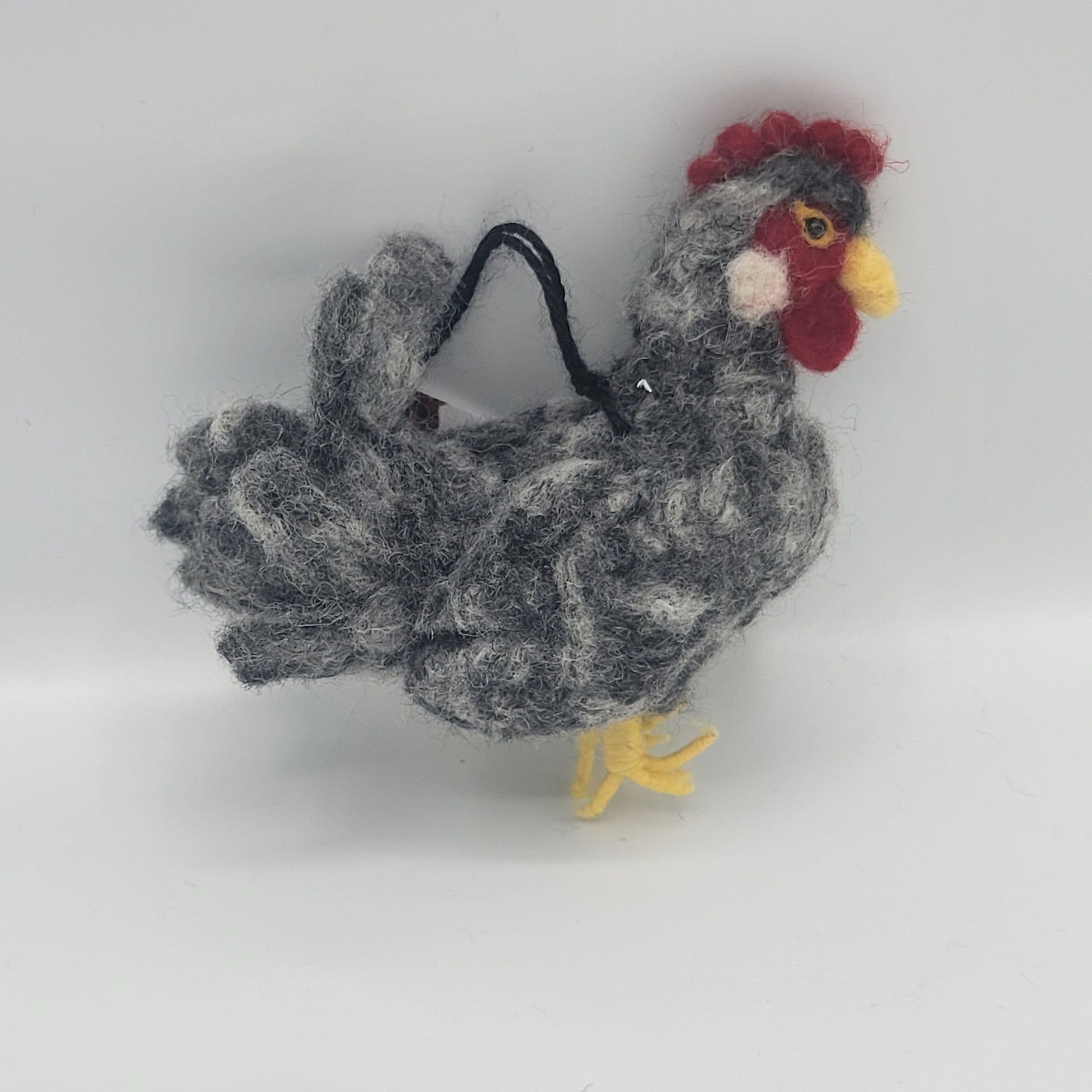 Sculptures are finished with a loop for hanging or may stand. Due to the hand crafting process, each piece is unique with slight variations. Faces are sewn and created with love.