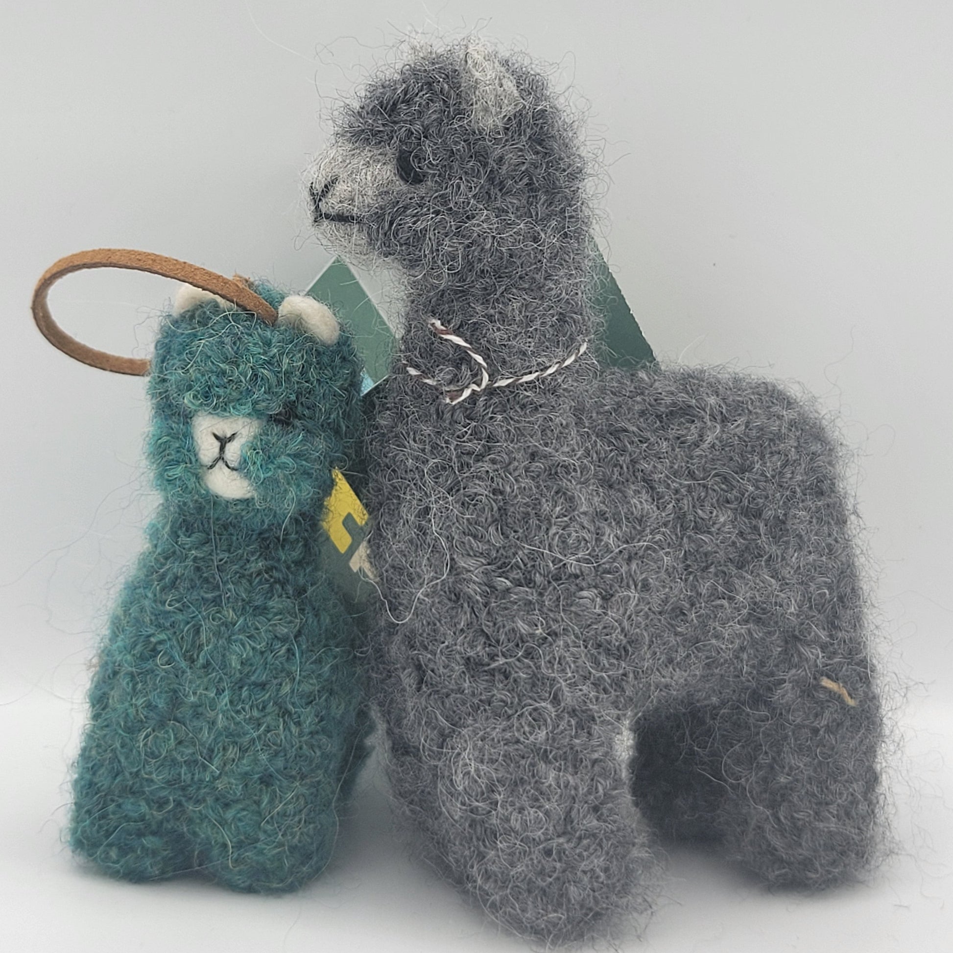 These farm animals are made from alpaca fiber.