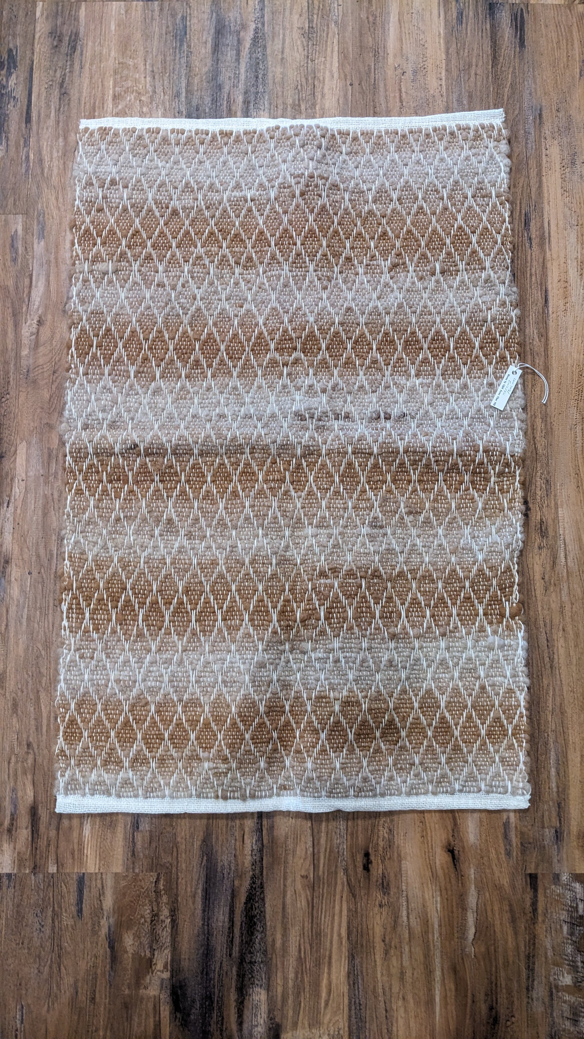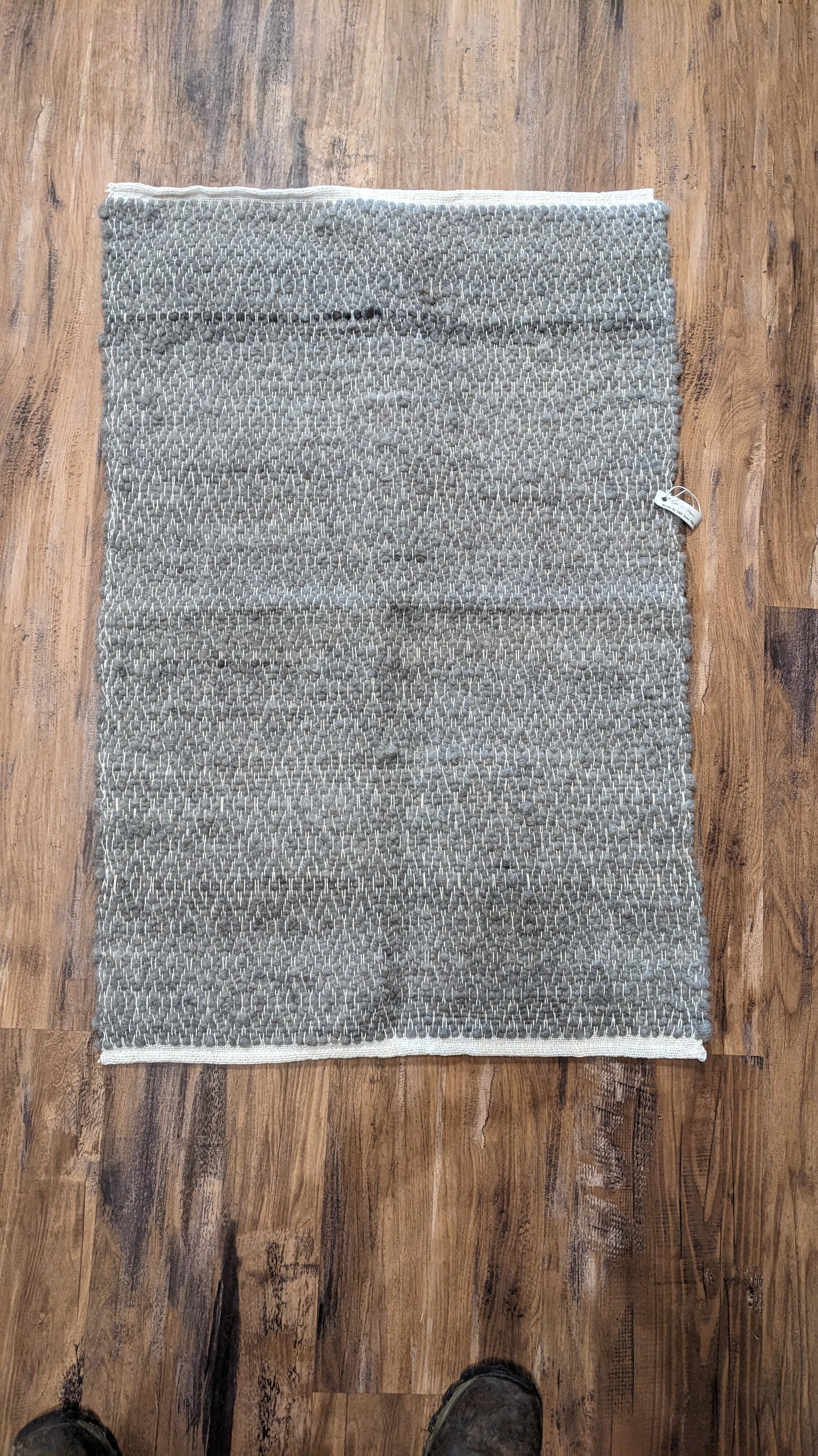 Made with 100% alpaca rug yarn. Measures approximately 2' x 3'. Handmade so there is variation in rug pattern.