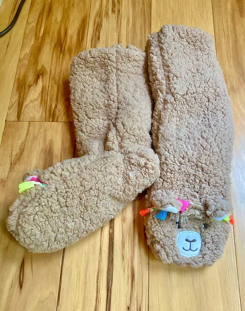 Cushy, soft Alpaca lounge slippers fit sizes for most people. W 6-11 M 5-10