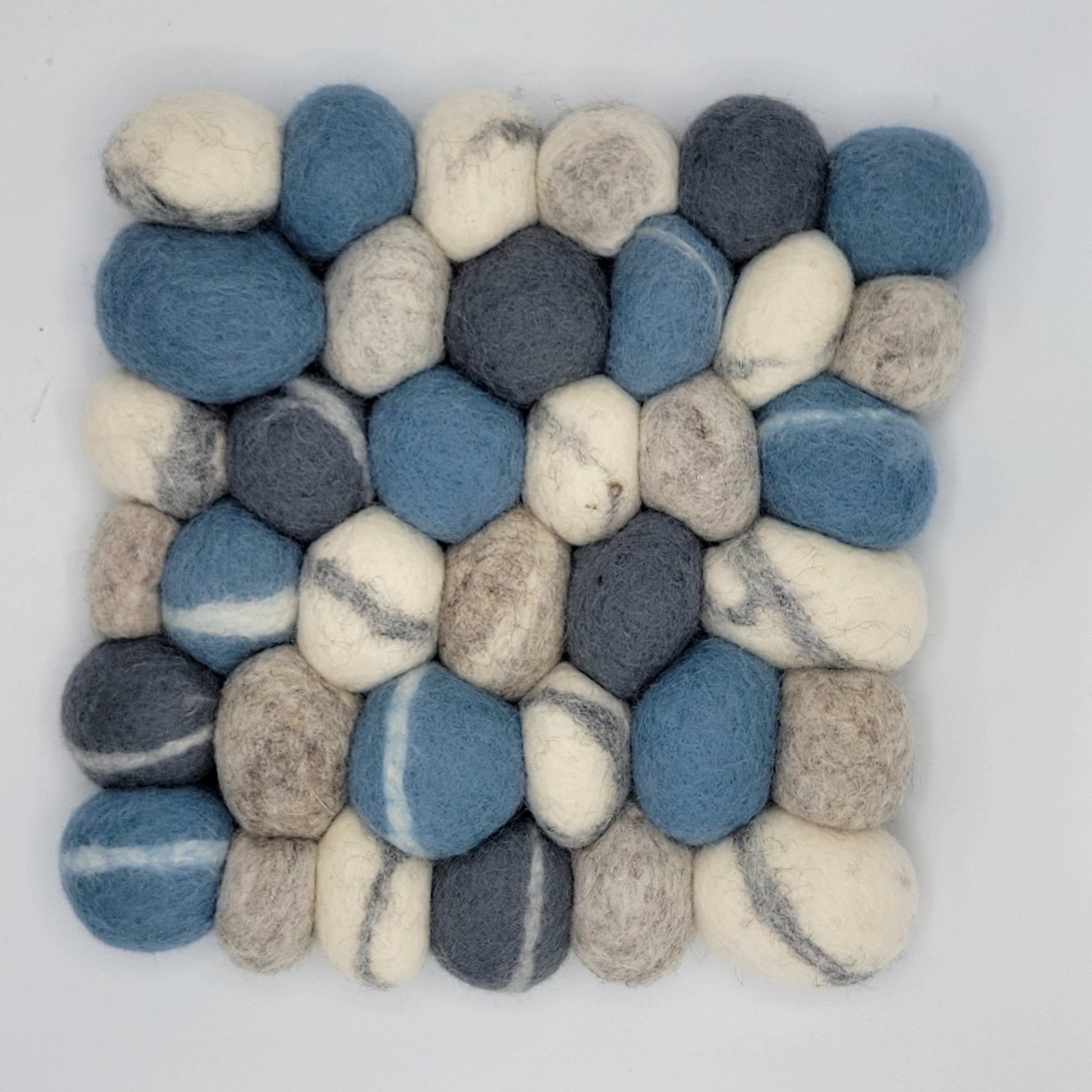 Decorate the middle of the table with these lovely mats which will protect it from the heat of serving dishes or teapots. - 100% Alpaca - Subtle natural colors - Felted by hand - Sponge clean only