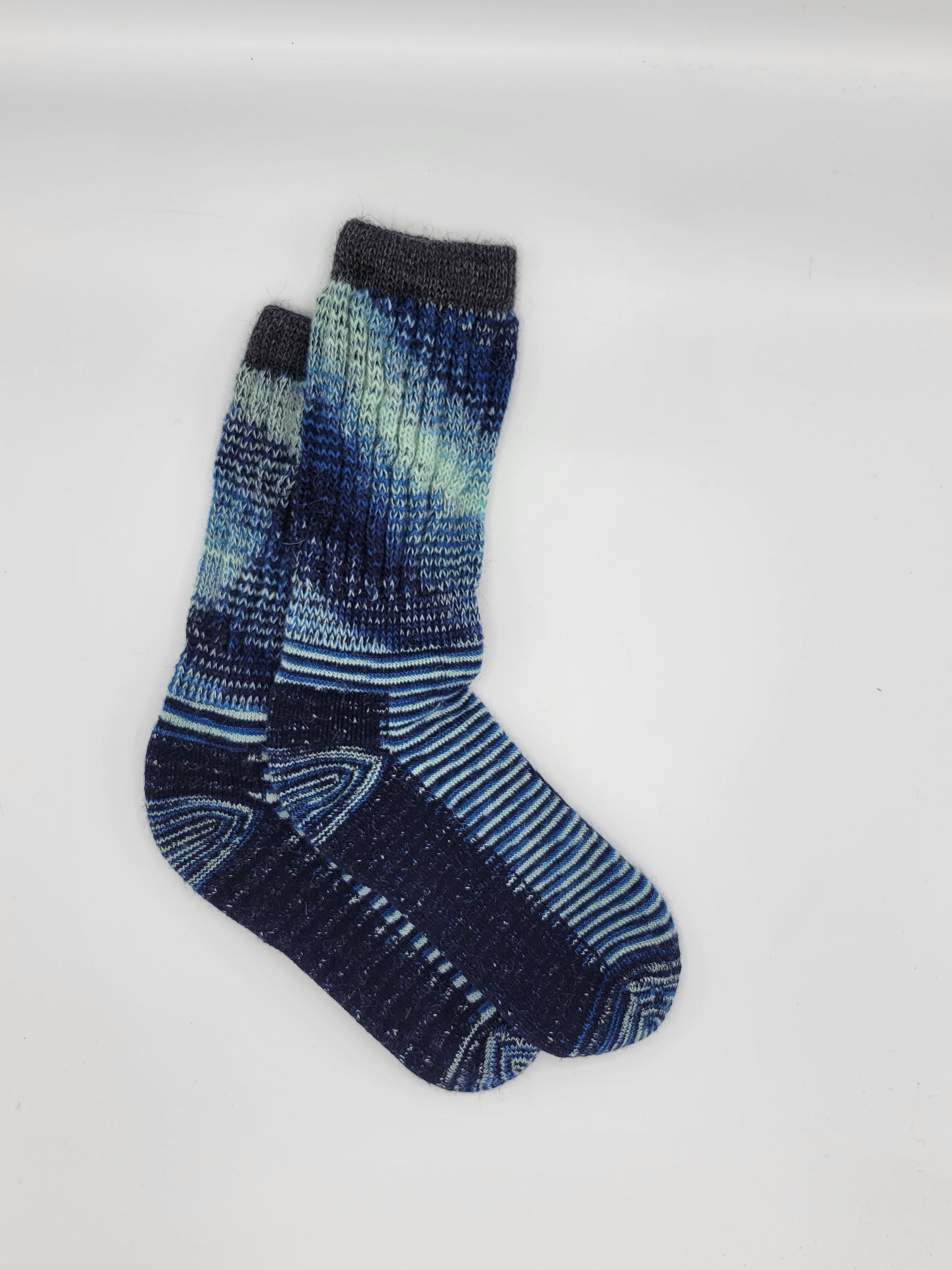 43% Alpaca 43% Acrylic 14% Nylon and Elastic.
